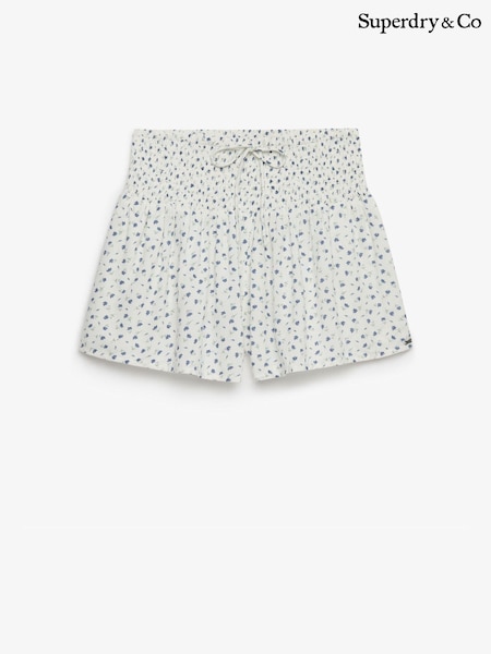 Superdry White Printed Mini Smocked Shorts