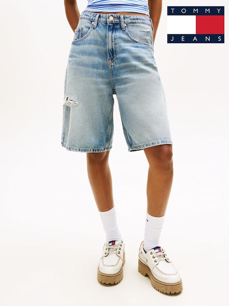 Tommy Jeans Blue Distressed Loose Denim Shorts