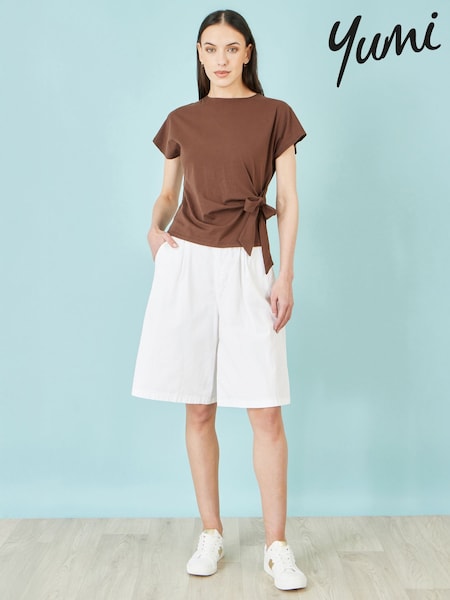 Yumi White Cotton Bermuda Shorts