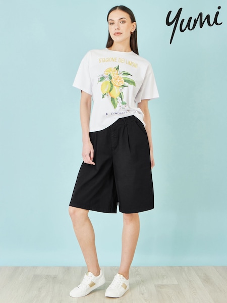 Yumi Black Cotton Bermuda Shorts