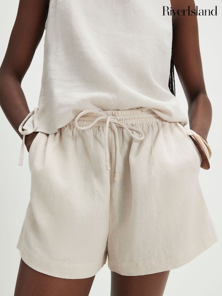 Roman Natural Petite Linen Mix Elastic Waist Shorts