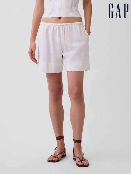 Gap White 4inch Mid Rise Linen-Blend Shorts