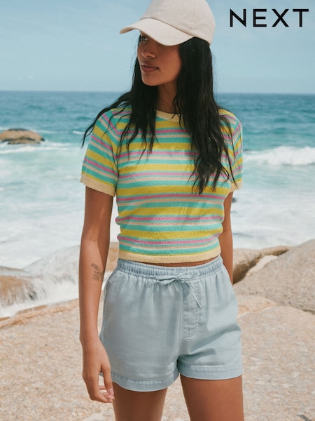Dark Blue Jersey Denim Pull On Elasticated Shorts