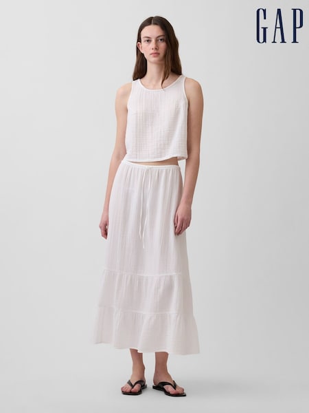 Gap White Cotton Gauze Easy Tiered Maxi Skirt