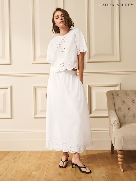 Laura Ashley White Broderie Cotton Scalloped Edge Skirt Co-ord