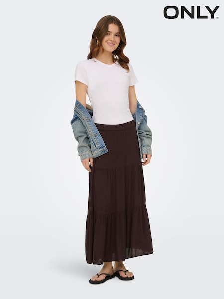 ONLY Brown Tiered Maxi Skirt