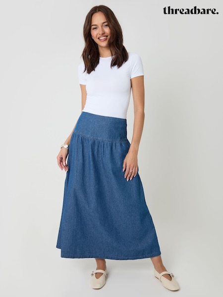 Threadbare Blue Dropped Waist Denim Maxi Skirt