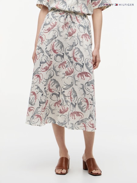 Tommy Hilfiger White Pure Linen A-Line Midi Skirt