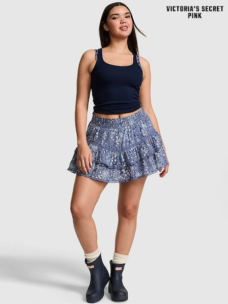 Victoria's Secret Pink Dusty Iris Blue Floral Print Ruffle Mini Skirt