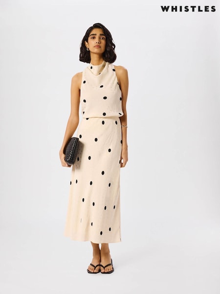Whistles Cream Jacquard Spot Satin Midi Skirt