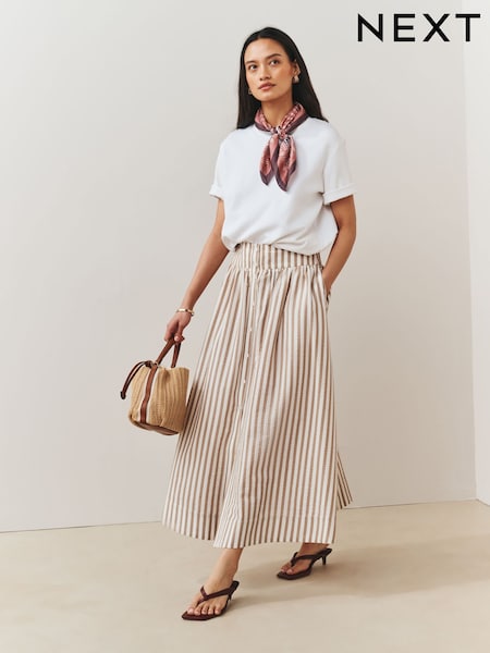 Neutral Stripe Button Down Maxi Skirt