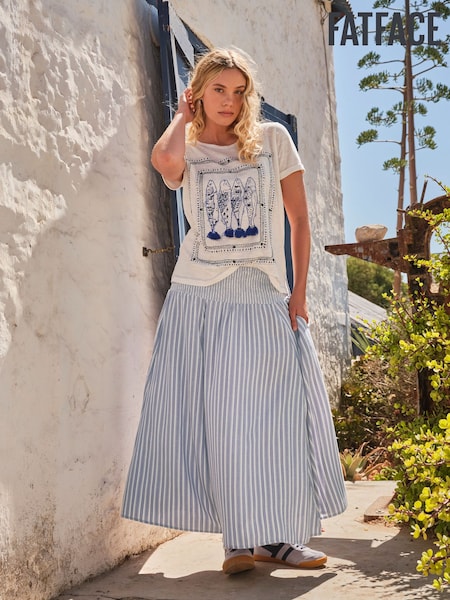 FatFace Hetty Blue Stripe Midi Skirt