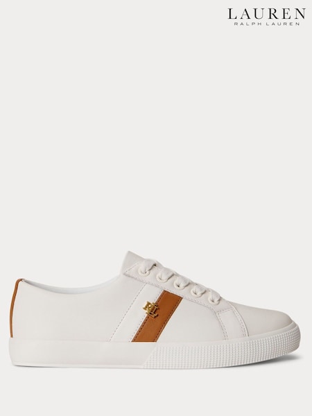 Lauren Ralph Lauren White/Tan/Sand Janson II Leather Sneakers
