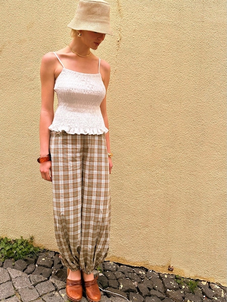 Amy Lynn Green Esme Check Cotton Balloon Trousers