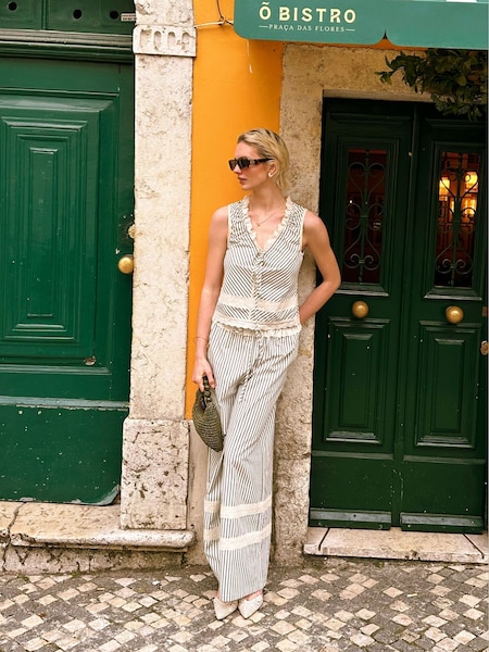 Amy Lynn Green Sloane Stripe Cotton Broderie Wide Leg Trousers