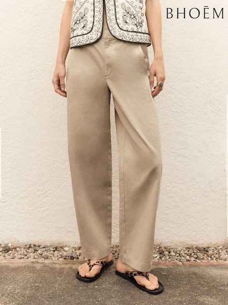 BHOEM Neutral Barrel Leg Cotton Trousers