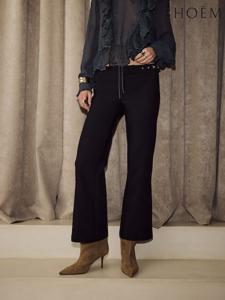 BHOEM Black Buckle Detail Cropped Flare Trousers