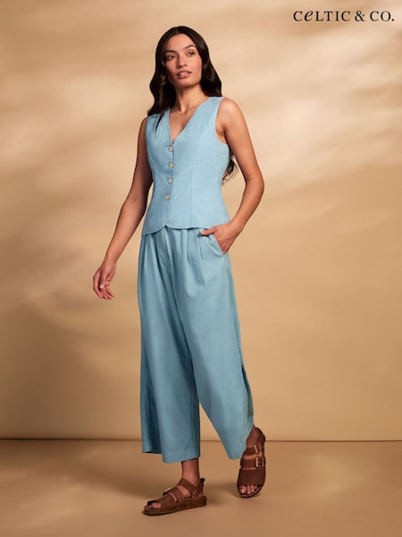 Celtic & Co. Blue Linen Blend Pleat Front Crop Trousers