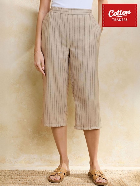 Cotton Traders Natural Linen Blend Cropped Trousers