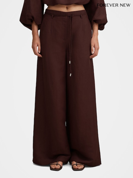 Forever New Brown Myla Wide Leg Pants Contains Linen