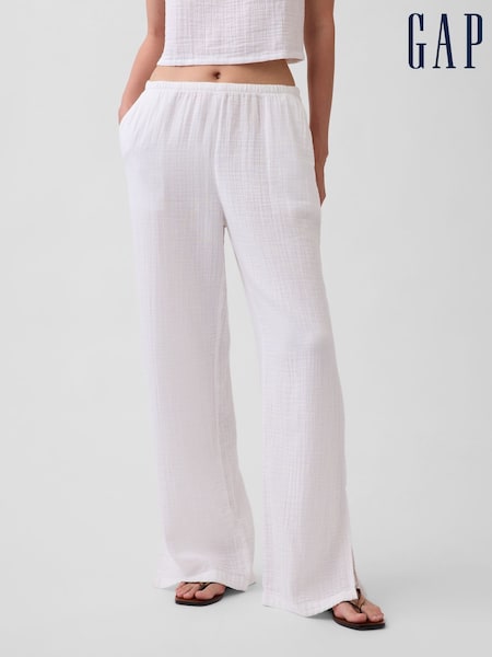 Gap White Cotton Gauze Easy Split-Hem Trousers