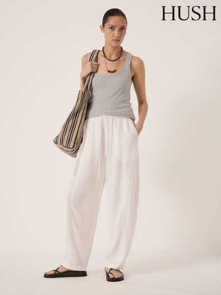 Hush White Tovi Linen Blend Barrel Leg Trousers