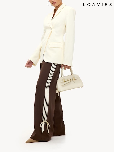 LOAVIES Brown High Waisted Wide Leg Trousers with Striped Sides