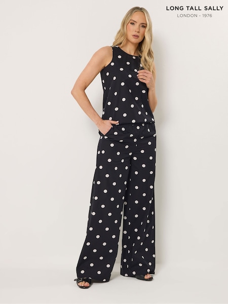 Long Tall Sally Black Spot Print Wide Leg Trousers