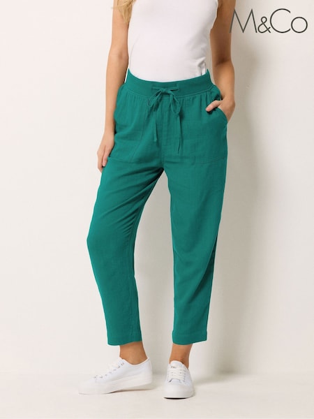 M&Co Blue Petite Linen Blend Cropped Trousers