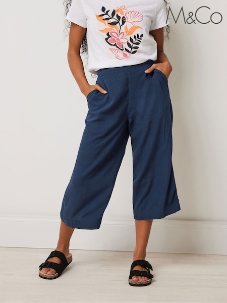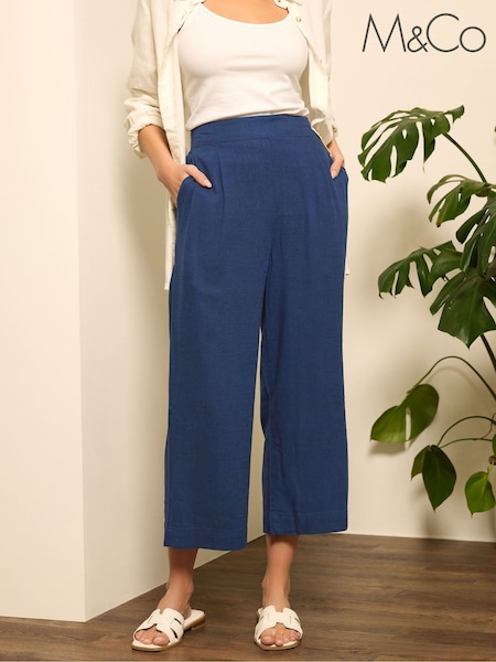 M&Co Blue Cropped Wide Leg Linen Trousers