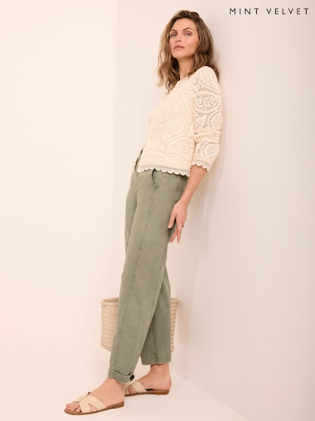Mint Velvet Green Cotton Blend Barrel Chino Trousers