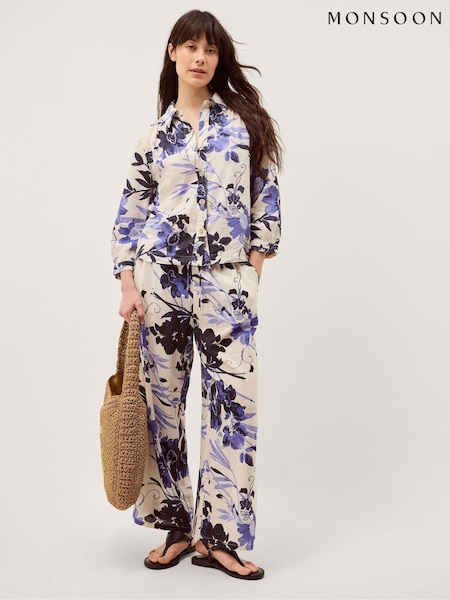 Monsoon Blue Padma Printed Palazzo Trousers