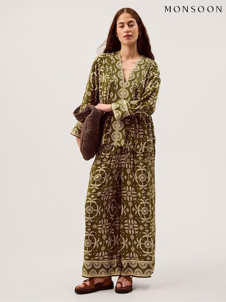 Monsoon Green Elma Print Balloon Trousers