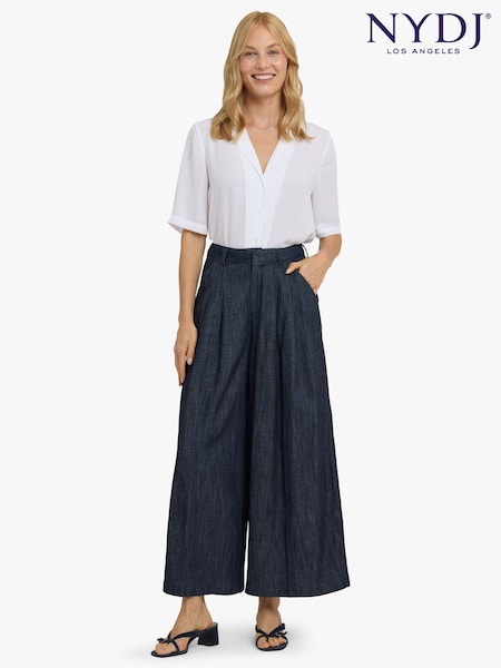 NYDJ Blue Giselle Wide Leg Ankle Trousers With Pleats