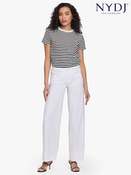 NYDJ White High Rise 5 Pocket Wide Leg Stretch Linen Trousers