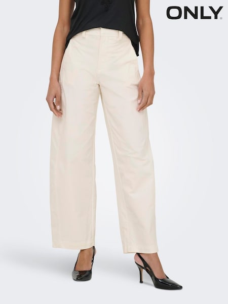 ONLY Cream Mid Waist Barrel Leg Chino Trousers