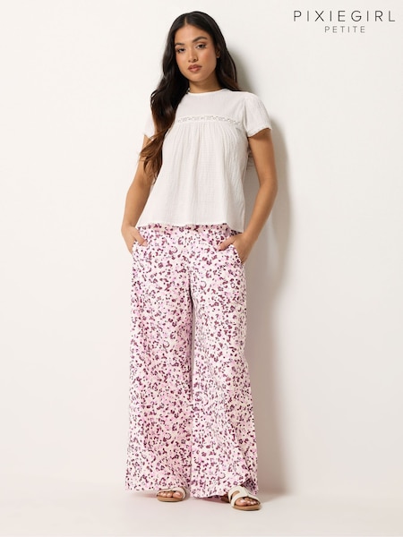 PixieGirl Petite Pink Cheesecloth Wide Leg Cropped Culottes