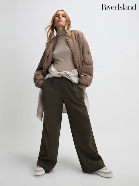 River Island Brown Mid Rise Barrel Leg Utility Cargo Trousers