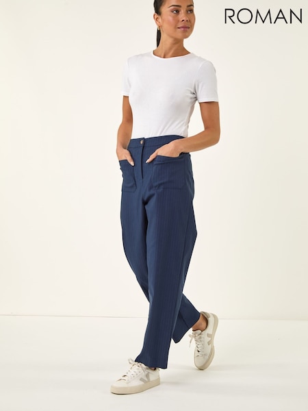 Roman Blue Petite Stripe Print Bengaline Stretch Trousers