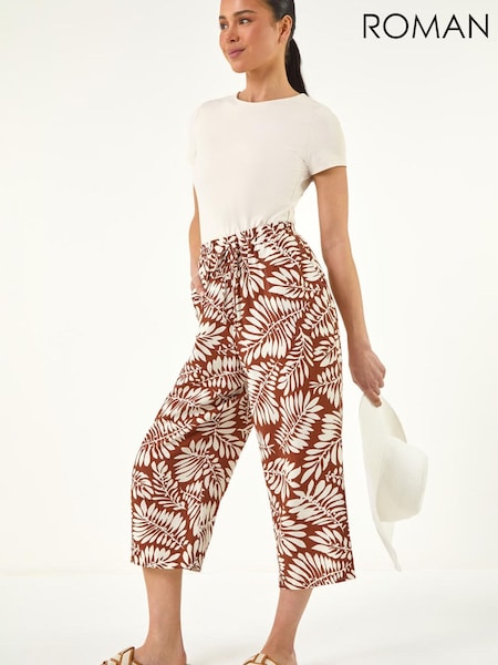 Roman Brown Petite Pocket Front Cropped Denim Trousers