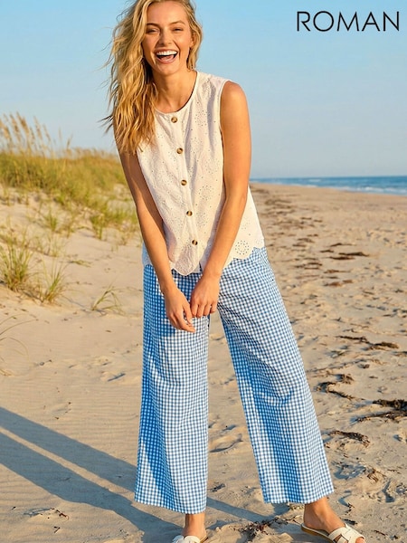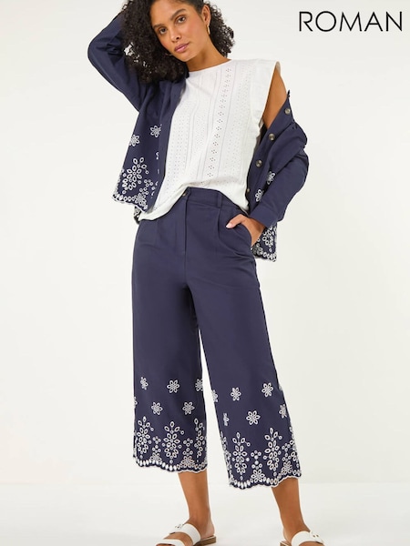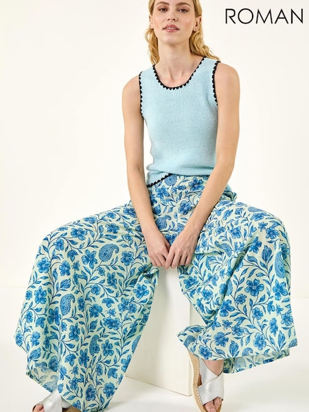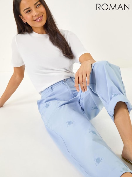 Roman Blue Petite Cropped Wide Leg Denim Trousers