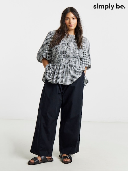 Simply Be Black Gingham Barrel Leg Trousers