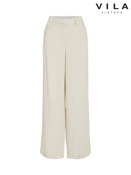 Vila Cream High Waisted Wide Leg Tailored Trousers