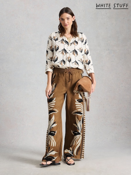 White Stuff Brown Ally Linen Wide Leg Trousers