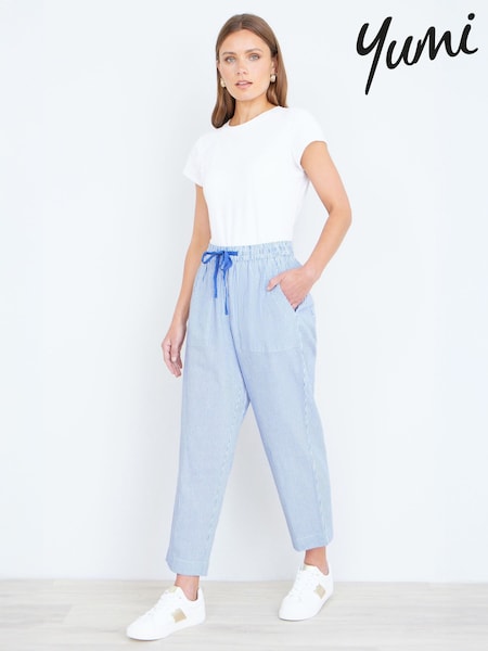 Yumi Blue Cotton Stripe Cropped Trousers