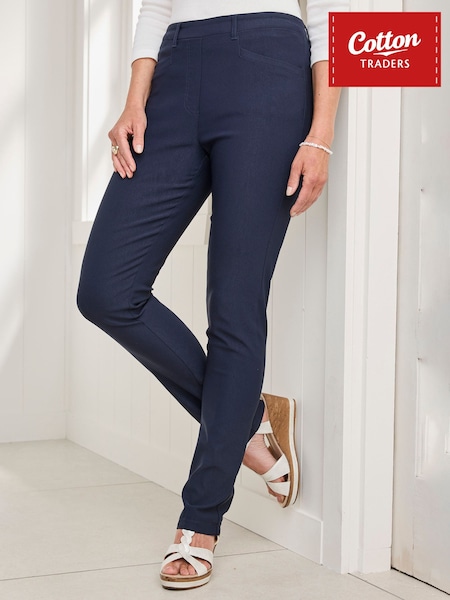 Cotton Traders Blue Super Stretchy Pull On Slim Leg Trousers