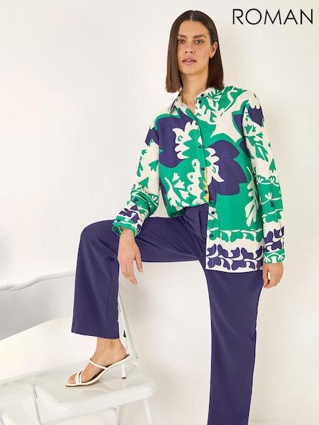 Roman Blue Straight Leg Ponte Stretch Trousers