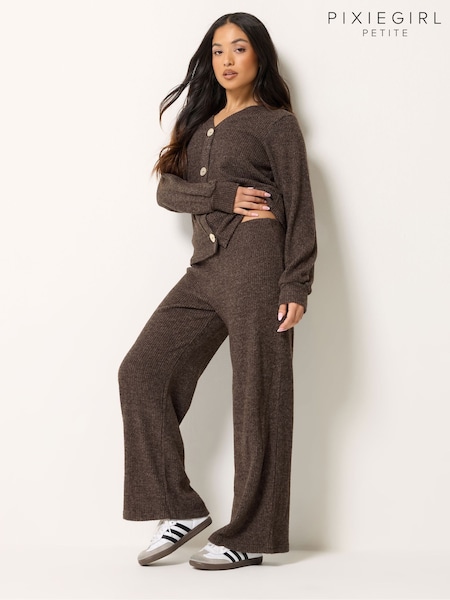 PixieGirl Petite Brown Soft Touch Wide Leg Trousers