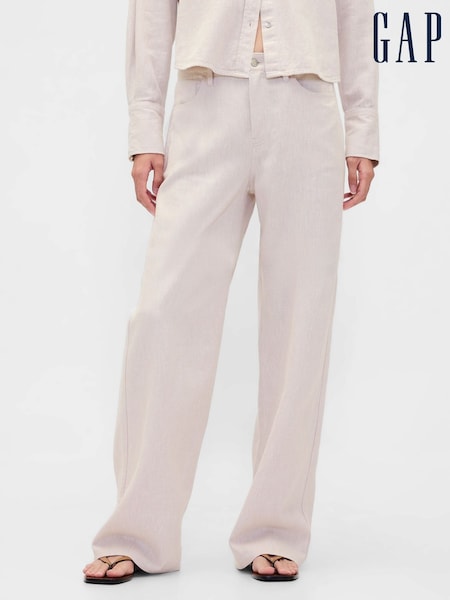 Gap Cream Linen Cotton Wide-Leg Trousers