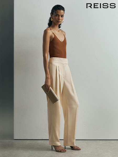 Reiss Cream Eden Elasticated-Waist Wide-Leg Twill Trousers